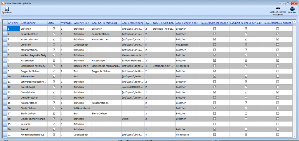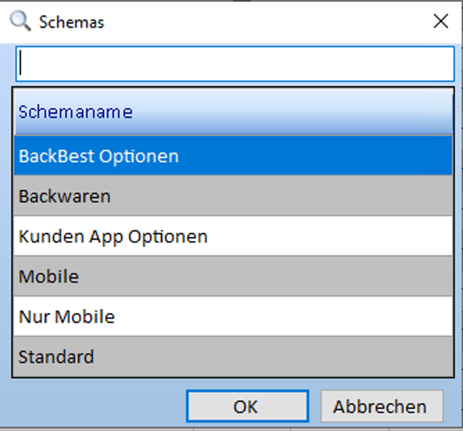 Schema „BackBest Optionen“ oder „Kunden App Optionen“