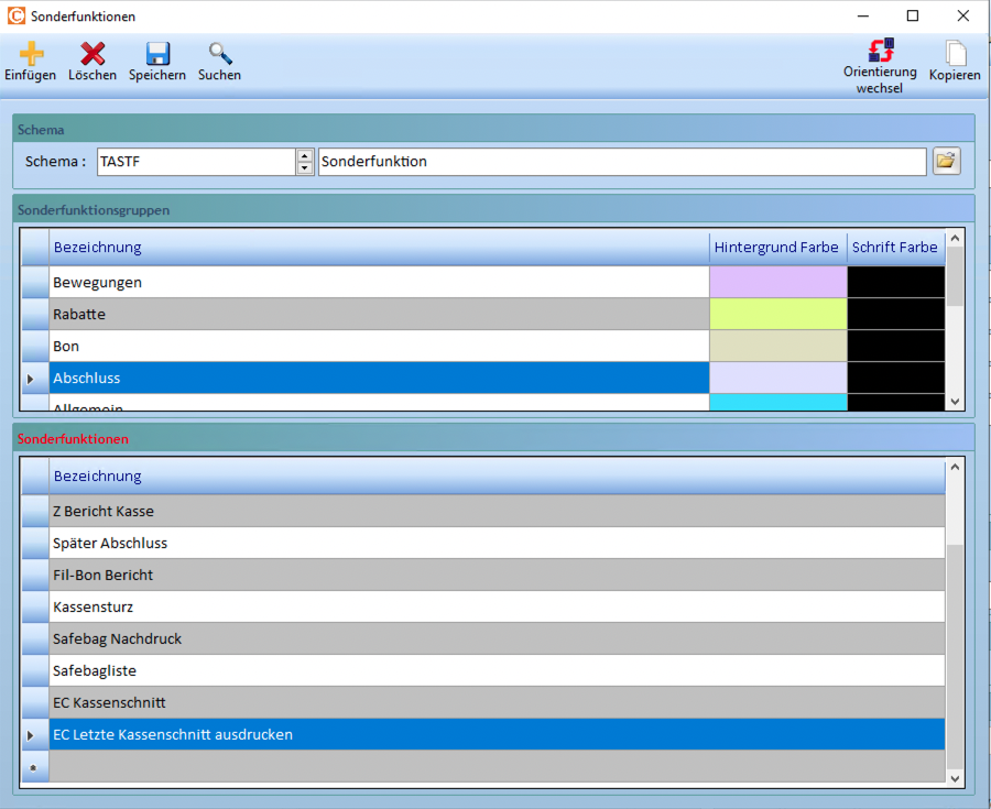 Anschließend können Sie festlegen, in welchem Menü und für welche Filiale die Anzeige und Nutzung der Sonderfunktion erfolgen soll.